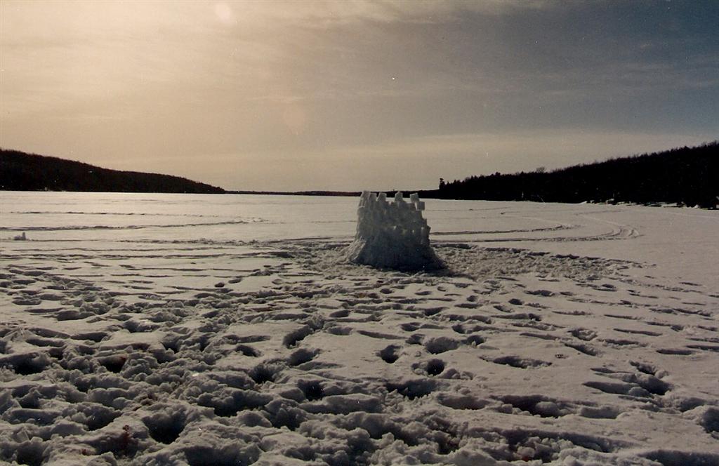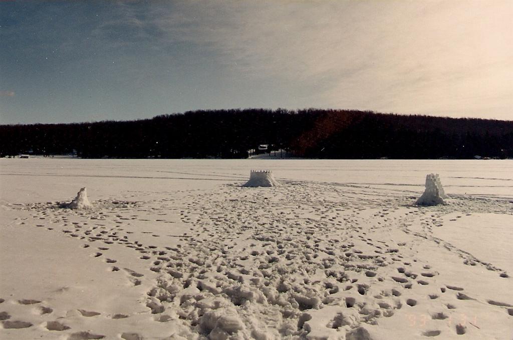 It was colder last year. The temperature soared to over 35 F on the day of fort construction. This was the second time we had the now annual Bottle Rocket war on the lake. It was sunny, too.