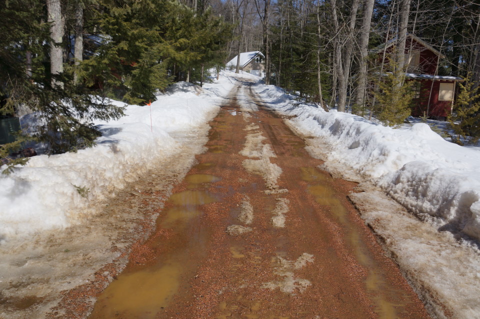 | The condition code of Knott Lane has gone from red (the color most associated with the hue of bruises compiled by falling on the ice) to brown (the color most associated with spring mud). | ||||||||||||||||||||||||||