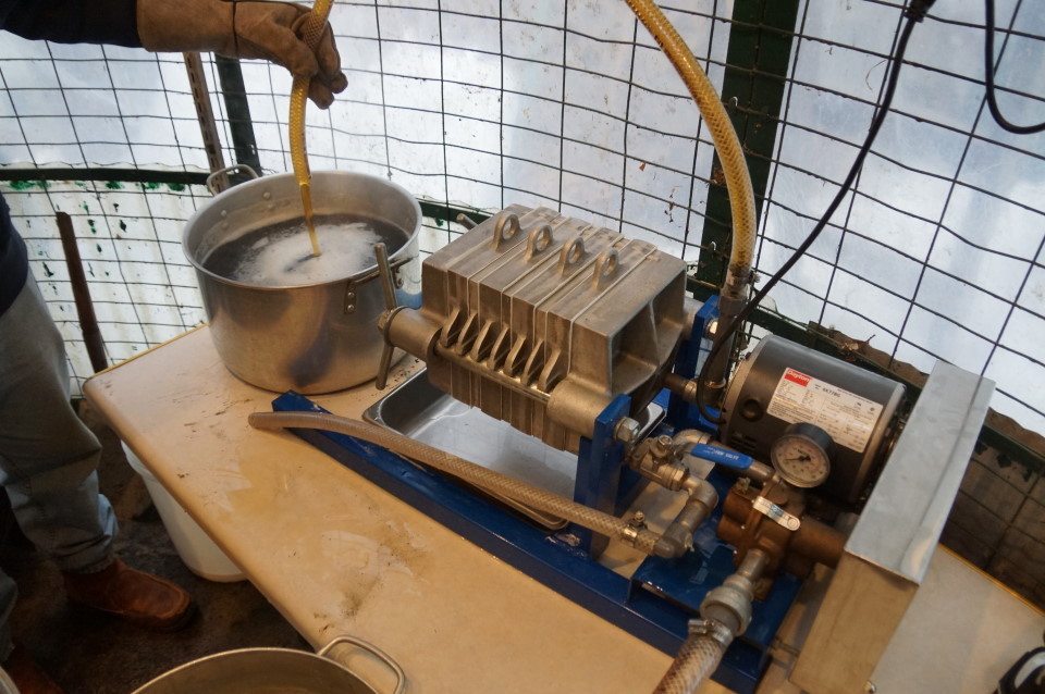 | It took about an hour to run it through a plate filter and can it. Both batches had great color. The second was a bit more maple-y. | ||||||||||||||||||||||||||