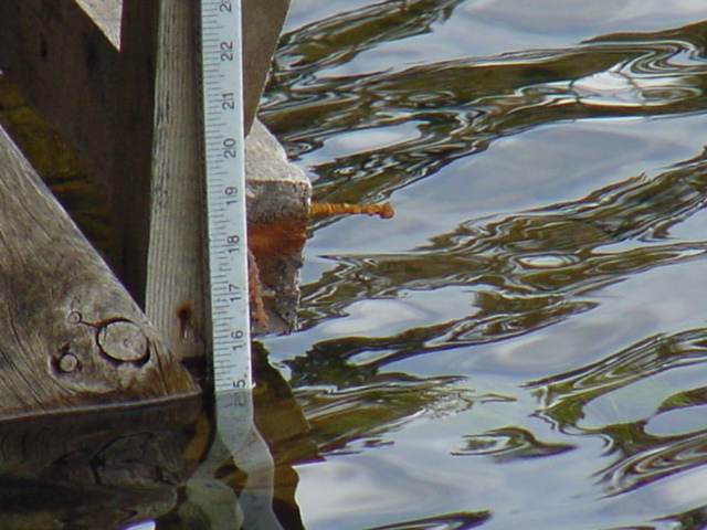 | How far down? Almost 3 inches below the nail. We have lost an inch since ice-in. |
