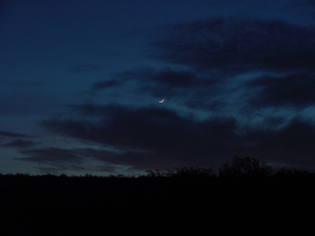 | As the sliver of a moon set the biting insects came out. Everyone left to find enclosed, bug free spaces. |