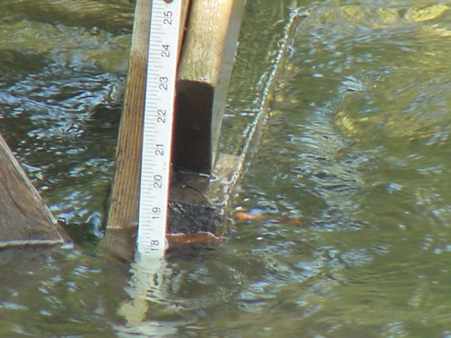 | The lake level has come up 4 inches in the last few weeks. The 65 F crystal clear water is now 2 inches above the nail. |