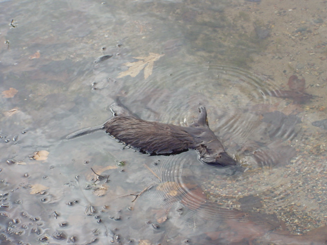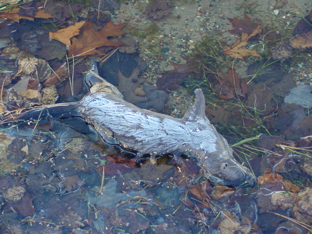 | By sunset, the pier, paddle boat, and raft were out of the water. Not much boat traffic this time of year. | The muskrat that has been spotted all summer and fall was found on the shore being particularly non-frisky. | ||||||||||||||||||||||||||||||||||||||||