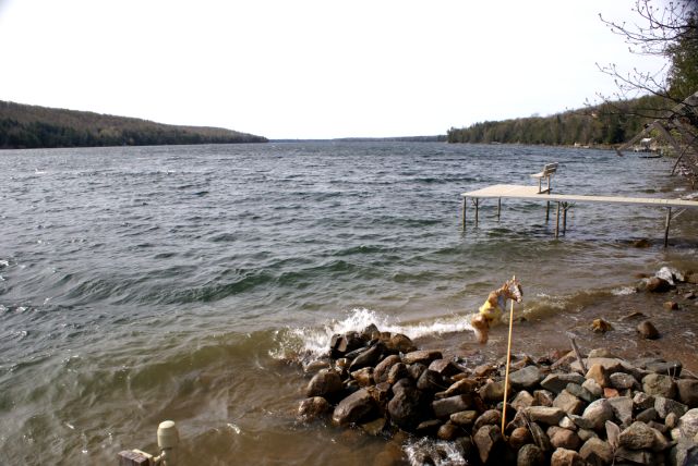 | Being up without a car, with only feet or a bike to get around, can make you more aware of the sounds of spring. The wind in the trees, waves on the shore, birds, and bears*: they are all softly quiet this time of year. The only possible exception are those noisy spring peepers at night. We'll be back next weekend. *A pack (herd?, group?, grump?) of 5 bears (1 female, 1 male, and 3 cubs) are raiding bird feeders on the north end of the lake. I'll try to get pictures next week. |