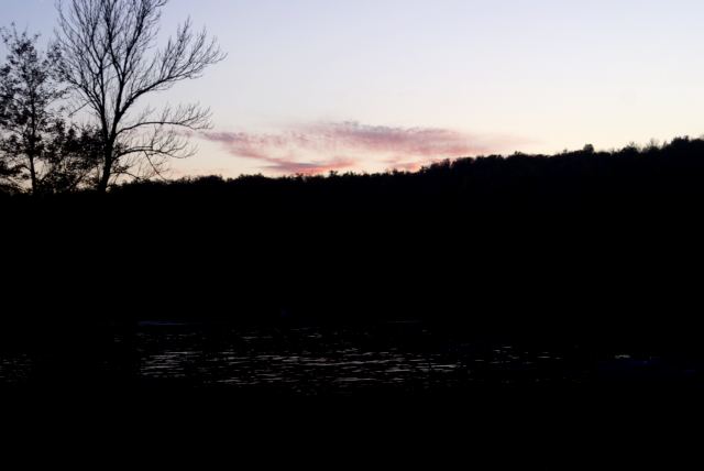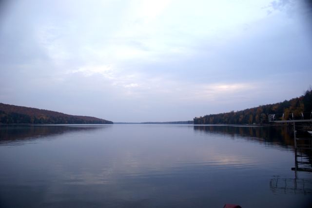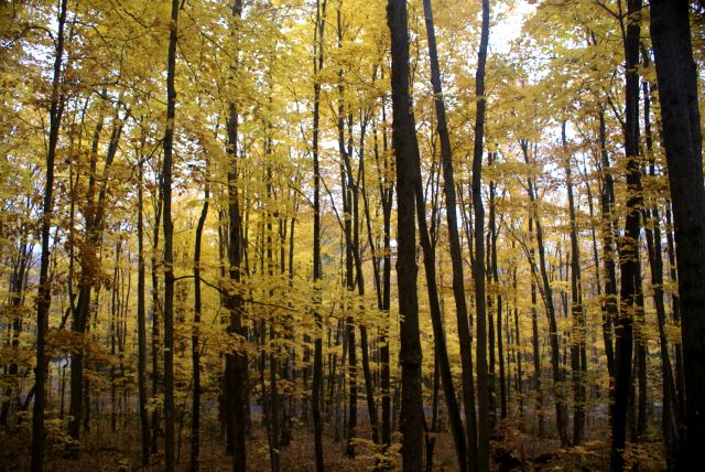| The sun set just after 6:00 PM on Friday. After a rather upsetting week in the markets, the calm of the northwoods was more welcome than ever. Later on Friday, we went over to Rhinelander to check out The Knight Gallery and Bugsy's. They're still there. Hodag lanes has all the bowling you can eat for $10 from 9:30 PM to midnight. Our fill of bowling took only about two and a half hours. | Many leaves have fallen, but there are many still attached and they are marvelous. Not much red left. There is plenty of yellow, gold, and brown. | |||||||||||||||||||||||