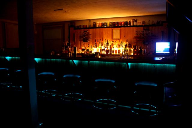 | Cool blue lights were added the previous night to the underside of the bar. The hunters seemed largely unimpressed by the loungy glow. The night started innocently enough with many banana daiquiris. Then came the beer. Then came a bizarre Wild Turkey taste test (Wild Turkey tastes of death). Then some miscreant found the dice cup. Then, regrettably, came the tequila. The cheap tequila Then came the end. | |||||||||||||||||||||||||||||||||||||||||||||||||||||