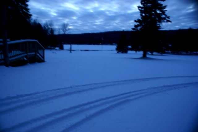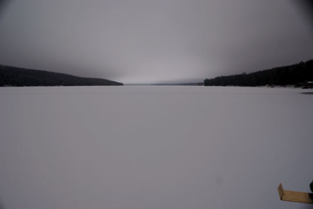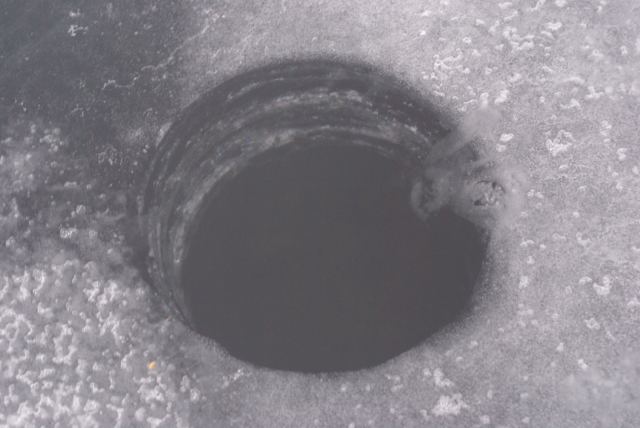 | On Sunday, using sore, ski weary muscles, a hole was made in the ice on the lake. There are 5.5 inches of very clear ice. It will be much thicker by next weekend. | |||||||||||||||||||||