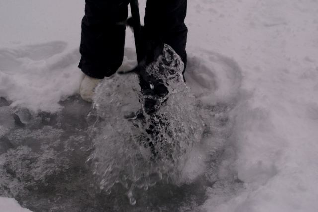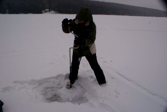 | On Sunday, the ice thickness was checked. Mrs. Nemo had the honor of drilling the hole. | ||||||||||||||||||||||||||||||||||||