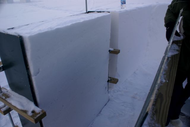 | After the form is filled, it's left for a few minutes to allow the pressure of the snow to create a solid mass. | |||||||||||||||||||||||||||||||||||||||||||||||||||||||||||||||||||||||||||||||||