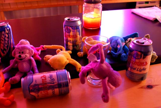 | Bar night, in the still waterless bar, featured mostly beer and pool. There was talk of shots and flaming shots but none were made. Maybe next weekend. There were also monkeys. | ||||||||||||||||||||||||||||||||||||||||||||||||||