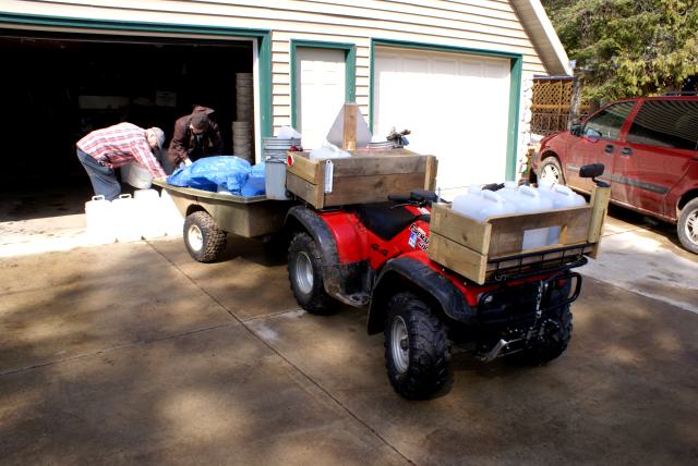 | Late Saturday morning, it was time to load the ATV and trailer with jugs to be filled with fresh tree squeezings. | ||||||||||||||||||||||||||||||||||||||||||||||||||