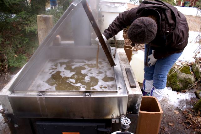 | Later on Saturday, smoke from the cookers hung in the air on the north end of the lake as the 110 gallons of sap collected was reduced down to syrup. | ||||||||||||||||||||||||||||||||||||||||||||||||||