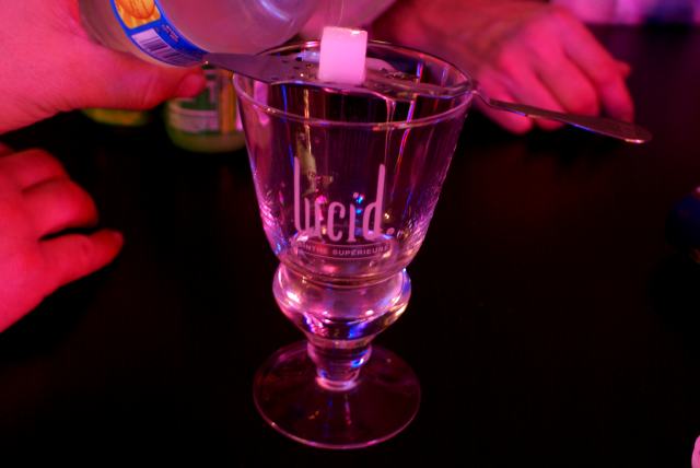 | Absinthe to the rescue! The "Green Fairy" erased the Owens Corning Fiberglass taste (It's really not so much the taste, but the texture!) from our palates in the same way a powerful herbicide cleans weeds, and any other plant life, from a garden. Plus the "Louche" was entertaining. | |||||||||||||||||||||||||||||||||||||||