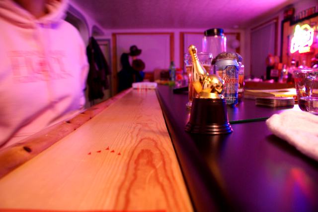 | A few frames of bar rail bowling were played for the coveted "Planet's Cup" shown here just right of center. None had the skill/luck to wrench the much sought after trophy from its barside home. | |||||||||||||||||||||||||||||||||||||||